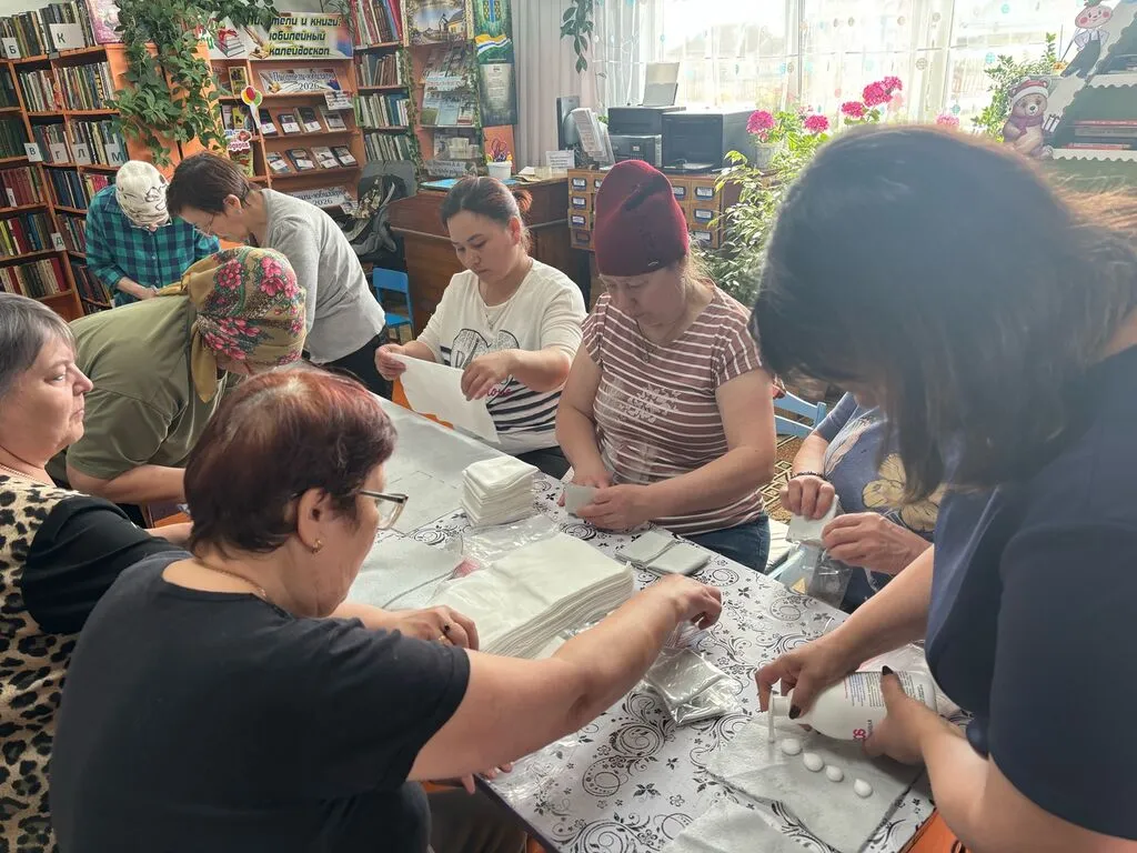 Продолжением встречи стал мастер-класс по изготовлению «сухого душа». Участники с большим вниманием и ответственностью подошли к этому делу, понимая, что их труд может стать важной поддержкой для наших солдат в полевых условиях.