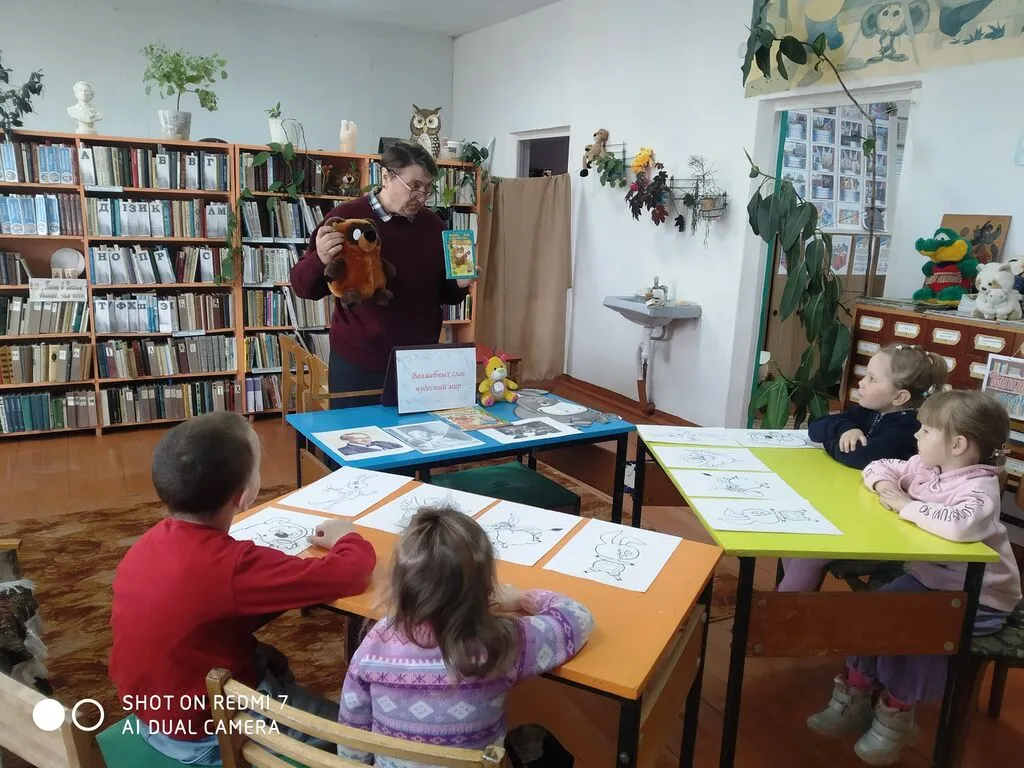 У книжной выставки «Волшебных слов чудесный мир» дети познакомились с жизнью и творчеством английского писателя Алана Милна, который написал эту знаменитую книгу. Они узнали, как появились медвежонок с опилками в голове и его друзья, послушали песенку Винни-Пуха и ответили на вопросы викторины. После чтения сказки «Винни-Пух и пчёлы» ребята обсудили поступки героев и выразили своё отношение к ним.